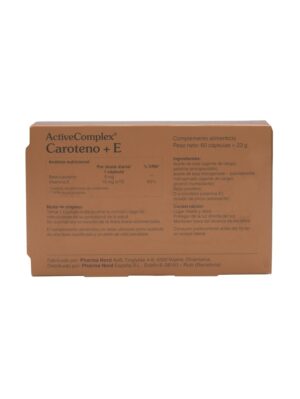 ActiveComplex® Caroteno + E es un complemento alimenticio que ayuda al mantenimiento óptimo de nuestra piel, gracias a su formulación preparada con una alta concentración de betacaroteno y vitamina E.