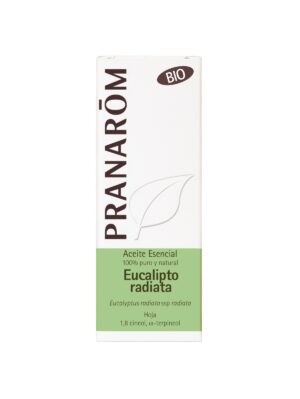 Aceite esencial con propiedades anticatarrales, expectorante, antitusivo, antiviral y antiinamatorio. Crece en los suelos drenadosde las alturas subtropicales, el eucalipto radiata posee un tronco gris azulado, una corteza caduca, hojas jóvenes redondeadas y hojas adultas lanceoladas. Los aborígenes australianos utilizan las hojas frescas para vendar las llagas.