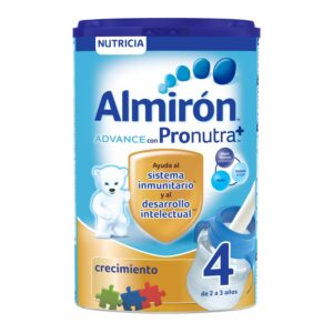 Almirón Advance 4 Pronutra 800gr contiene una combinación de nutrientes que ayudan a garantizar el funcionamiento del sistema inmunitario gracias a su contenido en Vitaminas C y D. Además, contiene oligosacáridos presentes en la leche materna. Indicada a partir de los 24 meses. Envase de 800gr de producto con un cacito.