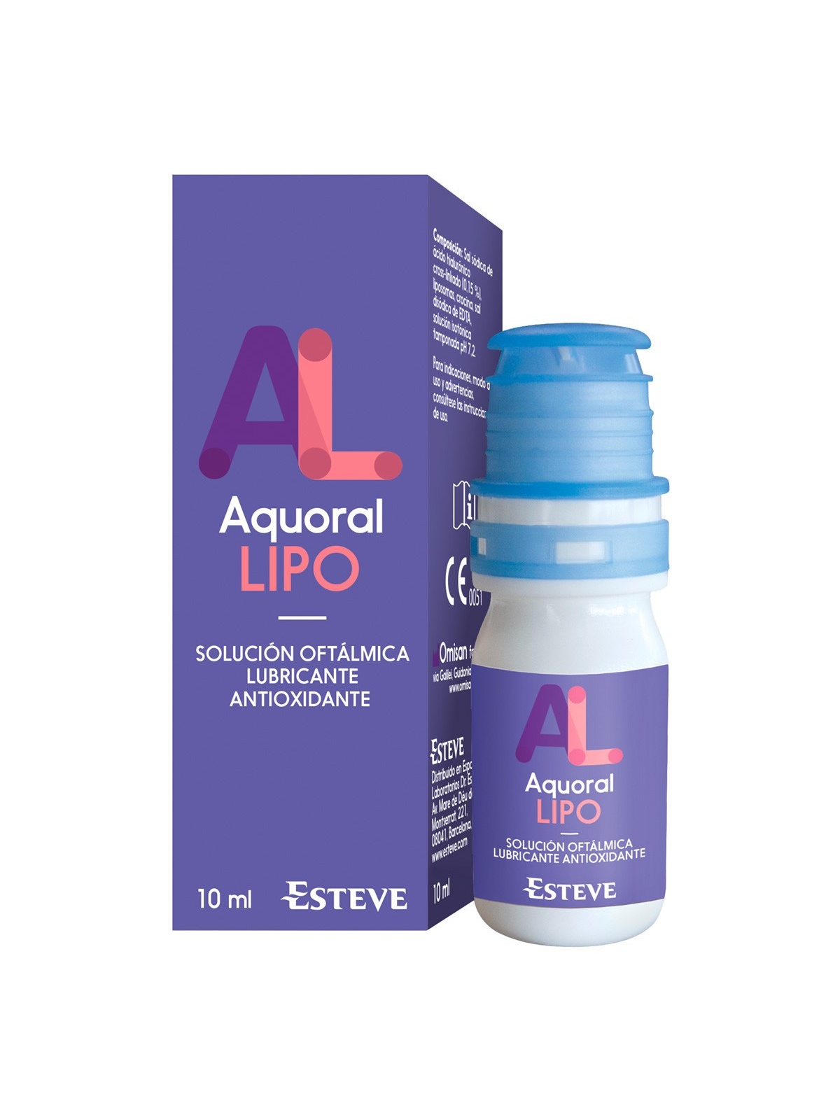 Aquoral Lipo Solución Oftálmica Lubricante Antioxidante 10ml es una solución ocular para el ojo seco compuesta por ácido hialurónico, cross-linkado de alta pureza, liposomas y crocina. Permite la estabilización completa de la película lagrimal, mejora la calidad y la cantidad de la lágrima.