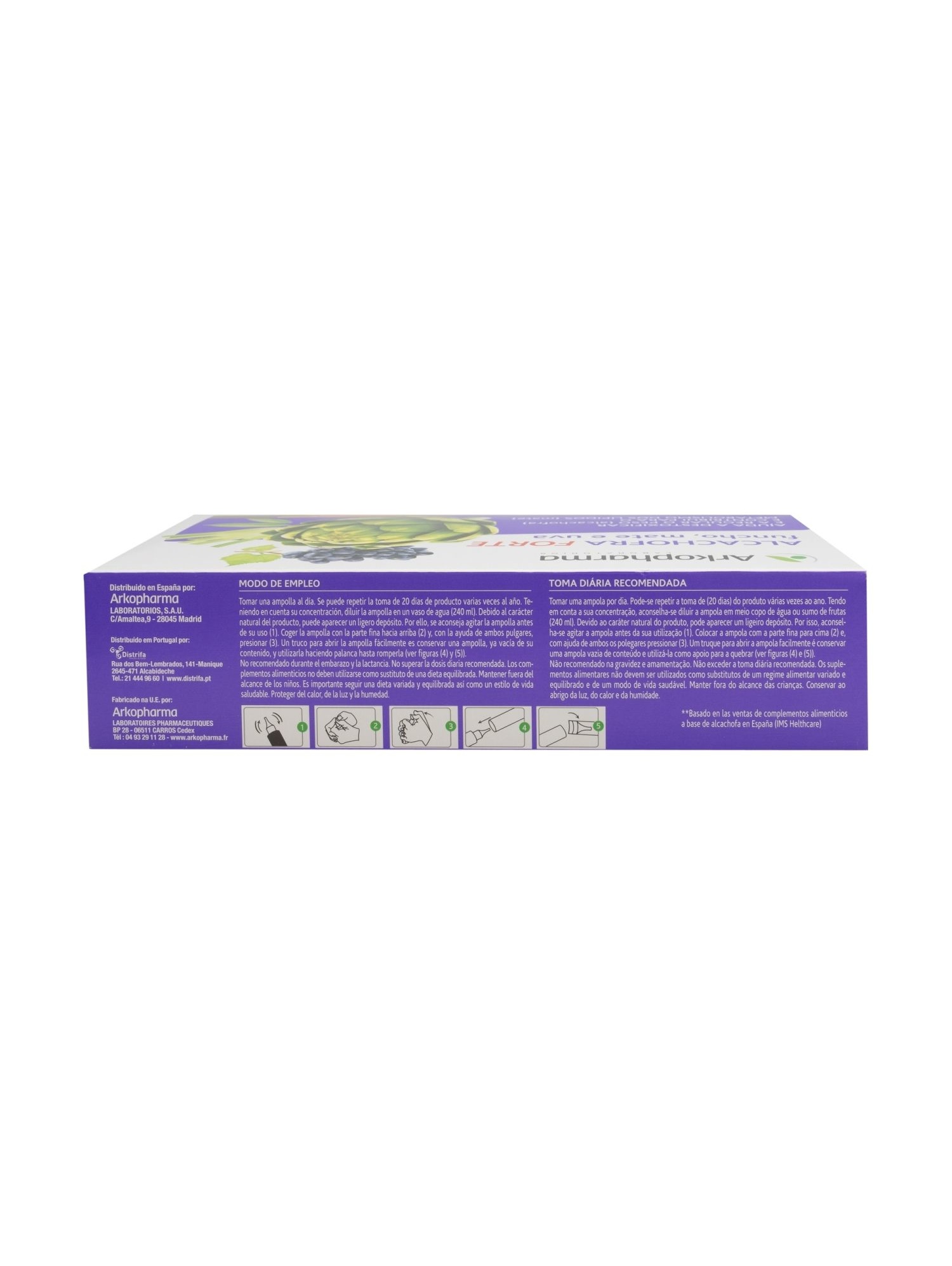 Arkofluido Alcachofa Forte 20 ampollas bebibles es un complemento alimenticio con propiedades digestivas y depurativas gracias a su riqueza en ingredientes naturales, como la alcachofa, el mate, el hinojo y la uva.
