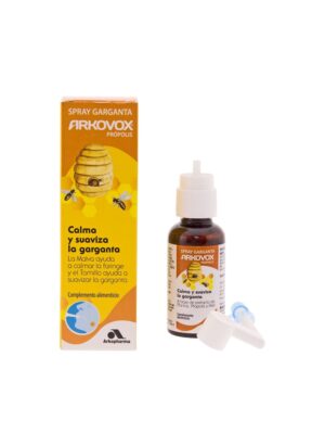 Arkovox Spray Garganta 30ml es un spray de própolis que ayuda a aliviar la garganta y suavizar la tos. El própolis o propóleo es una resina natural elaborada por las abejas a partir de las yemas y las cortezas de algunos árboles para cubrir sus colmenas y protegerlas de virus, bacterias y hongos. Su uso natural se debe a sus propiedades antibióticas, antivirales e inmunoestimulantes.
