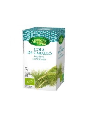 Los preparados de infusiones de Artemis BIO son el resultado de una selección de hojas, flores, frutos o de semillas de diversas hierbas y plantas procedentes de agricultura ecológica, que nos ayudan a mejorar nuestra salud y bienestar. La cola de caballo es una planta medicinal conocida por ser diurética y sus infusiones suelen tomarse cuando se tiene problemas de retención de líquidos, como método para adelgazar o para hacer un tratamiento depurativo natural. La Cola de Caballo es consumida por su alto contenido en sales minerales y para fortalecer los huesos.