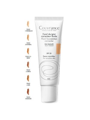 Una base de maquillaje fluida para pieles sensibles. La Base de maquillaje fluida correctora unifica y deja una tez totalmente natural, uniforme y radiante. Corrige y camufla sutilmente las imperfecciones cutáneas leves y moderadas gracias a su complejo de pigmentos fotocorrectores. Cuenta con una protección SPF 20 contra los rayos UV y ofrece protección contra el fotoenvejecimiento gracias al pretocoferil. Resistente al agua y al sudor.
