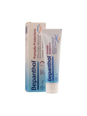 Bepanthol® Pomada Protectora 30g es una emulsión oleosa hidratante que favorece la regeneración natural de la piel seca, sensible, agrietada y fácilmente irritable. Su fórmula tiene un alto contenido lipídico y en dexpantenol, que forma una capa protectora sobre la superficie de la piel, aislándola de los agentes externos que la irritan. Además, actúan de barrera evitando la pérdida de agua.