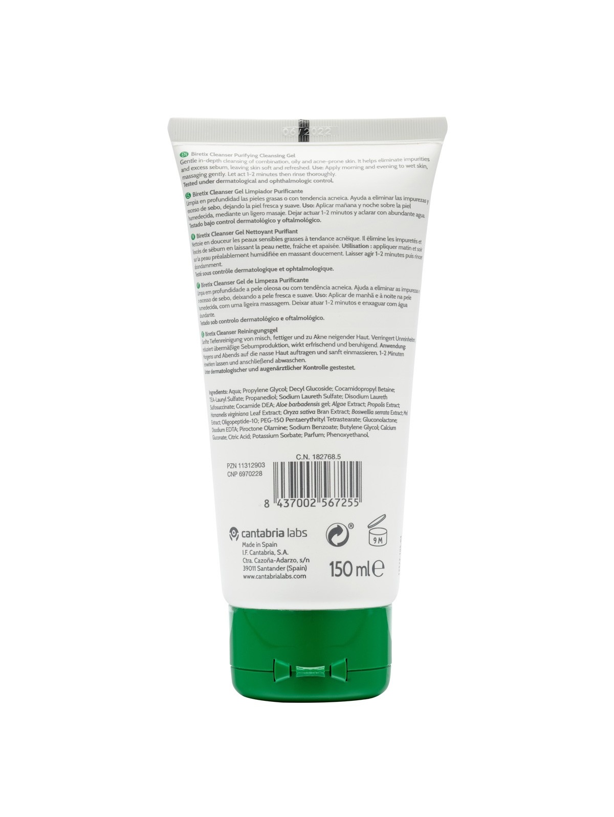 Gel limpiador purificante específicamente diseñado para la higiene de las pieles mixtas, grasas y co…