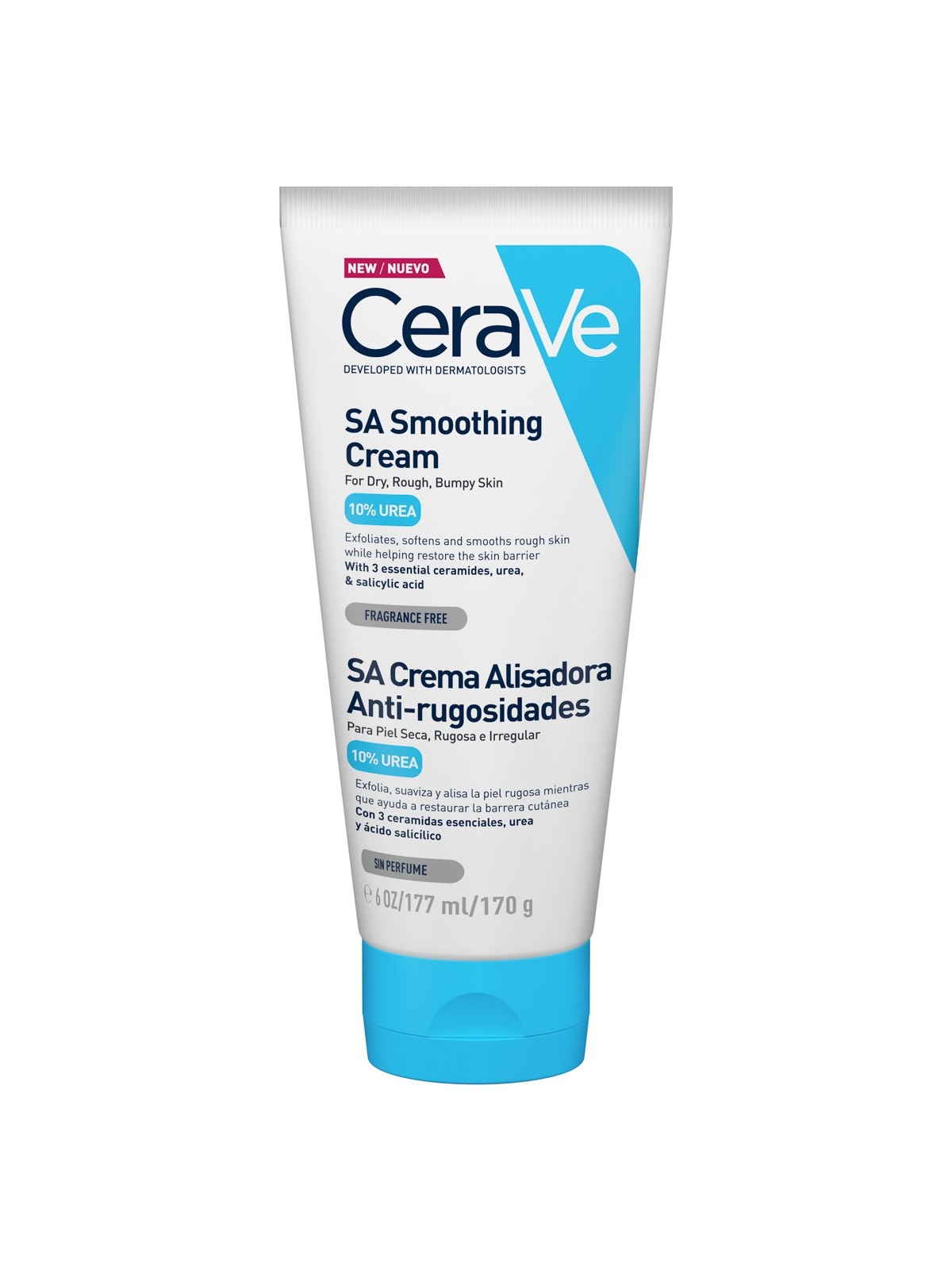 Crema hidratante no grasa con tres ceramidas esenciales diseñada para mejorar la textura de la piel y proporcionar hidratación quedura todo el día. Desarrollada con dermatólogos, la SA Crema Alisadora Anti-rugosidades con Urea 10% de CeraVe está formulada para suavizar, alisar e hidratar de forma eficaz la piel seca, irregular y rugosa mientras ayuda a reparar su barrera.