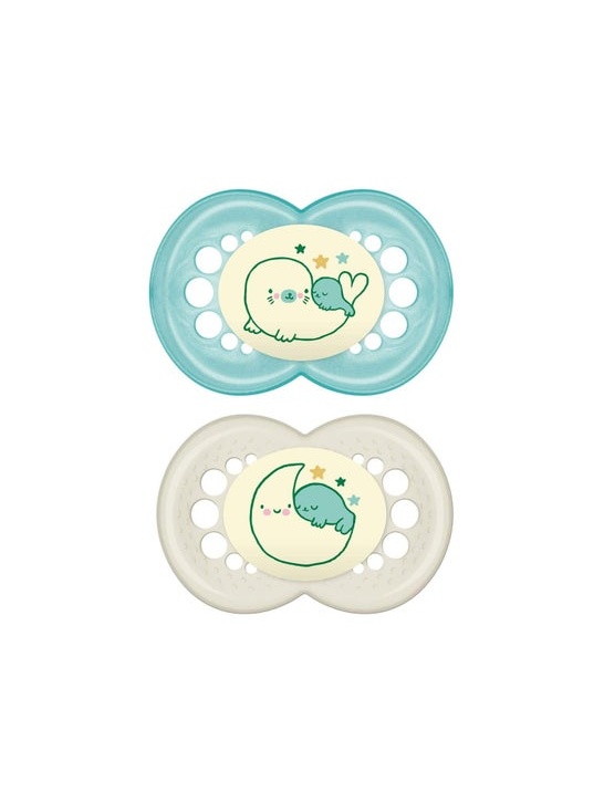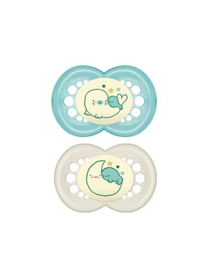 Chupete Silicona Mam Original Night + 16 M Pack Doble Verde. *El color o el diseño pueden variar en función de la disponibilidad.