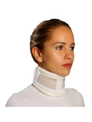 Órtesis de termoplástico forrado y almohadillado con diseño ergonómico para conseguir la posición neutra del raquis cervical. Constituido por 2 piezas regulables en altura, indicado para disminuir la movilidad del segmento cervical de la columna, aliviando el dolor. Disminuye la presión sobre los discos intervertebrales después del latigazo cervical. Indicado para contracturas, cervicalgia de origen muscular o traumático que requiera estabilización en la fase aguda y en periodo de readaptación, dolores por flexión postural excesiva, traumatismo.