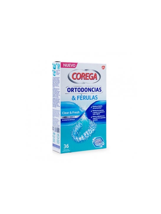 Pastilla para la limpieza de aparatos dentales de la marca Corega. Son pastillas que ayudan a mantener la higiene de los aparatos dentales, para conservar su utilidad y apariencia fácilmente. Disminuyen los malos olores que pueden absorber estos aparatos al utilizarlos varias veces y devuelven el color original de las piezas. Ideal para utilizarlo al limpiar ortodoncias invisibles, férulas de descarga, retenedores y alineadores.