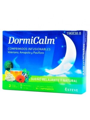 Dormicalm con Valeriana, Amapola y Pasiflora, contribuye a mantener una relajación óptima y una buena calidad del sueño. Son unoscomprimidos infusionables que pueden ser tomados via oral o infusionados.