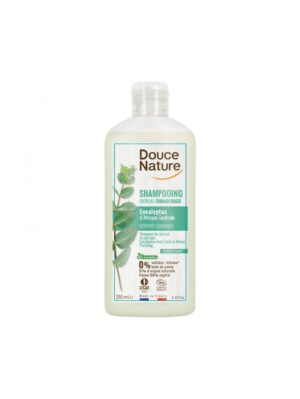 Champú purificante enriquecido con aceite esencial de eucalipto de África, con certificado ecológico de Ecocert. Envase 100% vegetal. La fórmula tiene propiedades purificantes, regula el sebo dando ligereza y brillo al cabello graso. La composición ha sido testada bajo control dermatológico. Sin jabón, sin aceite de palma ni derivados, sin sulfatos, sin betaína.