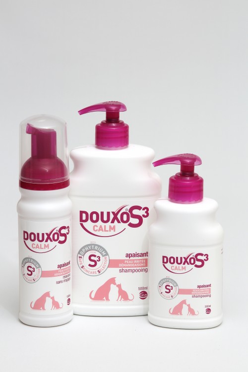 Douxo S3 Calm es un Champú para pieles sensibles de los perros y gatos. Suconcentracion elevada de Ophytrium hidrata y refuerza la barrera mecánica cutánea y ayuda a aliviar la irritación de la piel favoreciendo su regeneración.