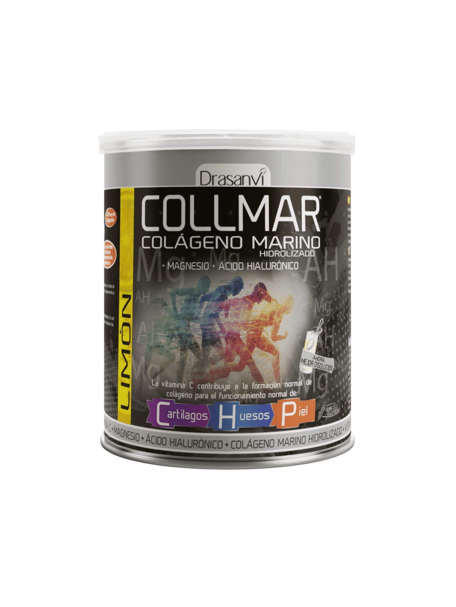 Drasanvi Collmar es un complemento alimenciticio de proteínas para personas que quieran aumentar su masa muscular, mejorar el funcionamiento de sus articulaciones, cartílagos, huesos y piel. Este producto está compuesto de colágeno marino, magnesio y vitamina C, ingredientes que ayudan a mejorar estas partes del cuerpo. Además, Drasanvi Collmar es de fácil disolución y cuenta con un sabor agradable a limón, lo que facilita su su consumo.