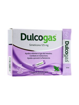 Dulcogas 18 sobres 125mg es un suplemento alimenticio rico en simeticona. Actúa eliminando el exceso de gases del intestino. Asimismo, este producto combate el meteorismo, con lo que se evitan las flatulencias. Sabor a menta.