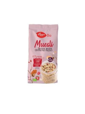 Muesli de frutos rojos sin gluten de origen biológico con certificado verde que garantiza que es un producto que ha sido elaborado íntegramente con productos procedentes de la agricultura ecológica, siendo respetuosos con el medio ambiente. Se trata de un producto apto para una alimentación vegetariana y vegana.