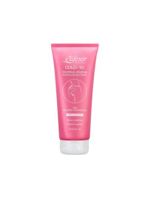 El gel escultor multiactivo Culo-10 de E’lifexir® contiene glaucina, que eleva los glúteos y reduce las acumulaciones de grasa en la zona; Venotonic Plant Complex, un complejo exclusivo que ayuda a que la piel se vuelve más suave y luminosa al estimular la microcirculación, y un complejo anti-estrías que reduce la profundidad de las mismas y estimula la producción de colágeno.