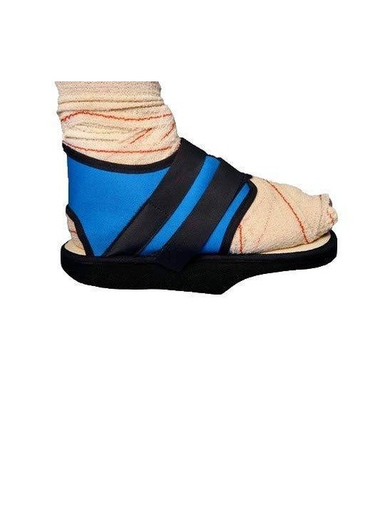 Calzado de yeso para el postoperatorio talla M. Su diseño con velcro se ajusta a cualquier pie de entre el número 33 y el 38, ajustándose a la perfección gracias a que es regulable. Con suela antideslizante ha sido fabricado pensando en facilitar la deambulación cuando se está en proceso de recuperación después de una intervención quirurgica y es adaptable para el pie derecho y el izquierdo.