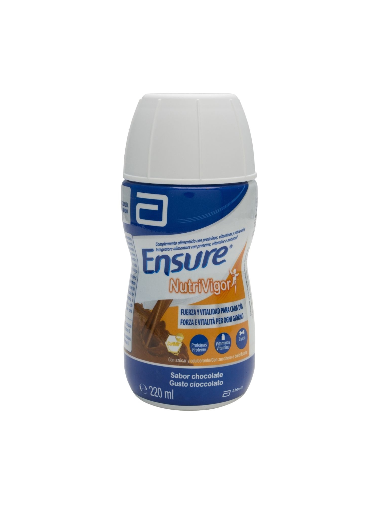 Ensure NutriVigor complementa la nutrición de los adultos. Ofrece los nutrientes básicos para fortalecer el cuerpo. La toma de este alimento líquido de chocolate ayuda a disminuir la fatiga y el cansancio y a mantener la calidad ósea y de los músculos.