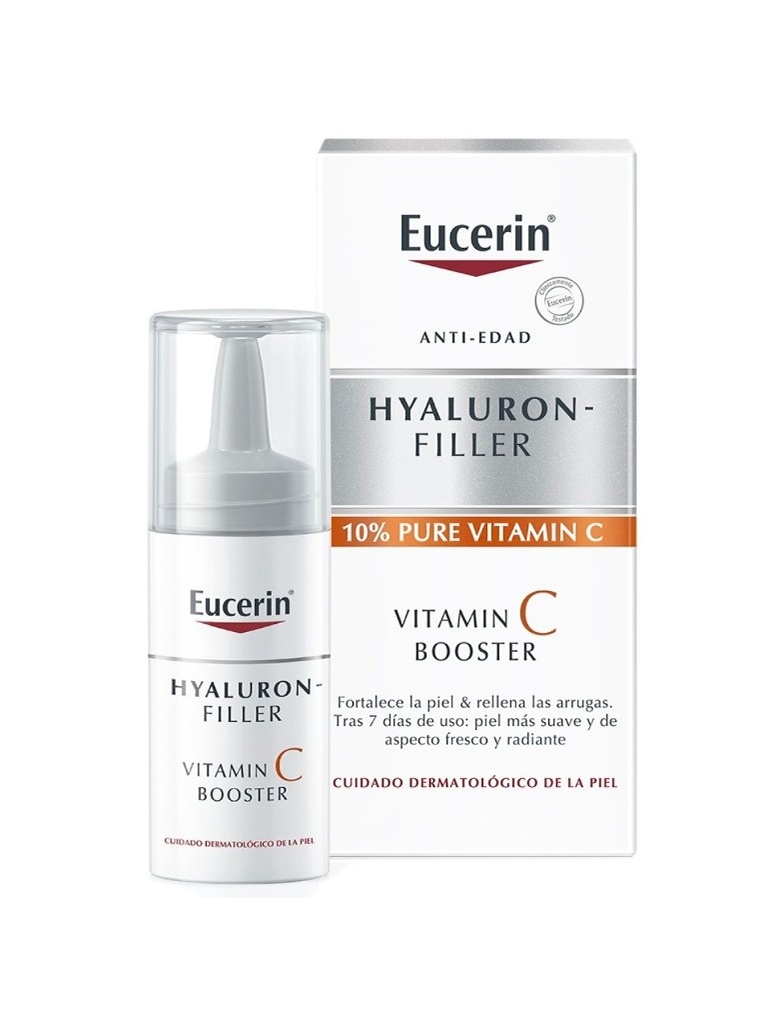 Eucerin Hyaluron Filler Vitamin C Booster 8ml es un sérum antiedad de absorción rápida que ayuda a proteger la piel mientras atenúa las arrugas faciales. Asimismo, ayuda a hacer frente al estrés oxidativo causado por el sol, el tabaco y otros aspectos que activan la formación de radicales libres.