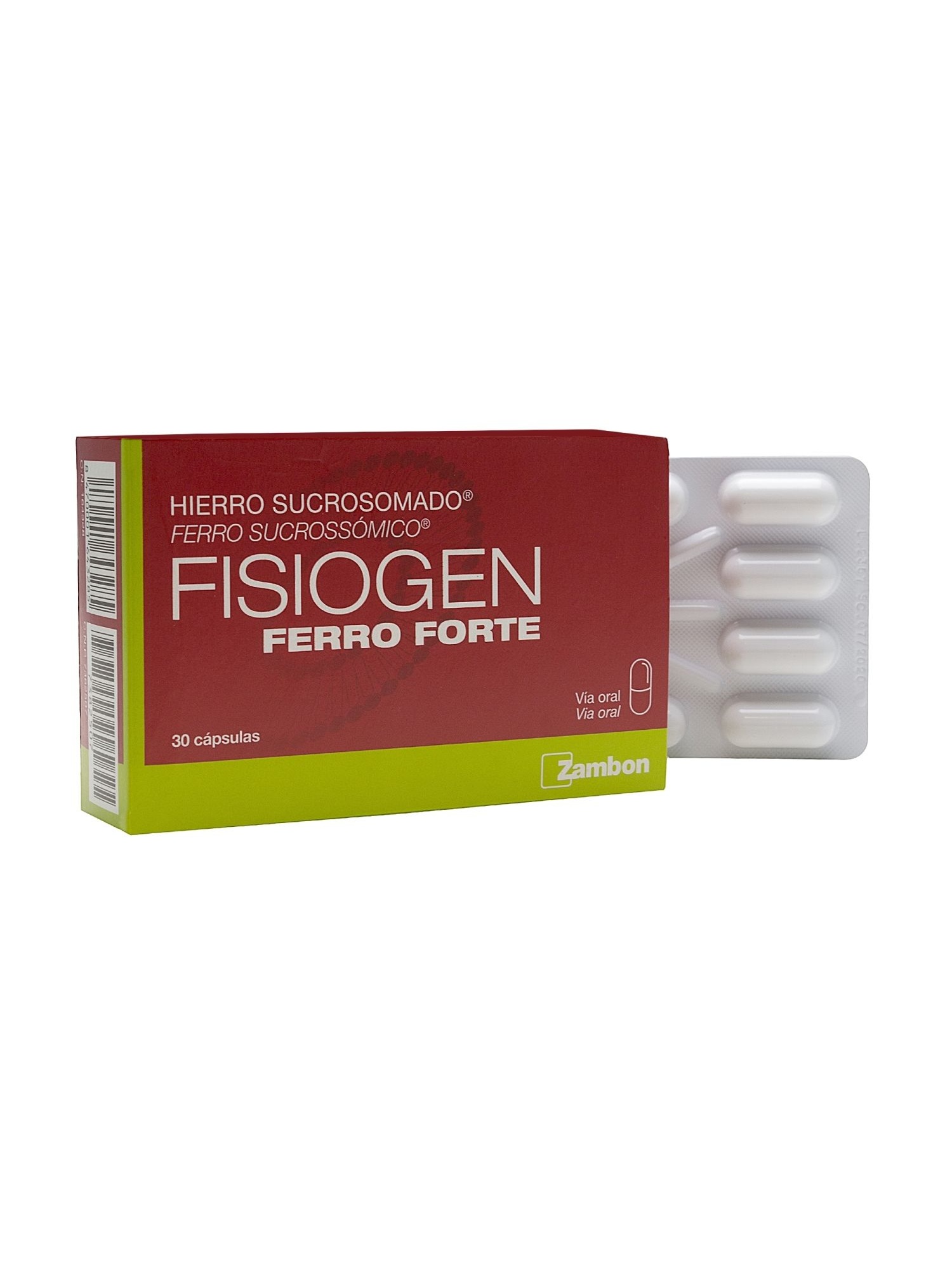 30mg de hierro por cápsula.Además, Fisiogen Ferro Forte 30cáps es rico en vitamina C.