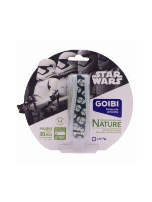 Es una pulsera, diseño de Storm de Star Wars, con disco formulado a base de citronela y aceites esenciales en el interior, que actúa como repelente de mosquitos, con posibilidad de uso a partir de 3 años.