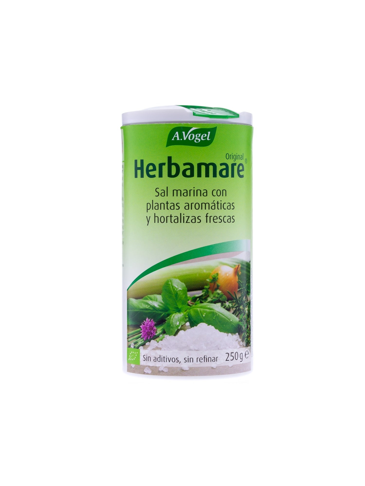 A. Vogel Herbamare Original es un sazonador aromático, formulado a base de una rica mezcla de sal marina, hortalizas frescas, hierbas aromáticas y de alga marina kelp. Logra darle un rico sabor a tus comidas sustituyendo otros productos como la sal común, más perfudicial para tu salud.