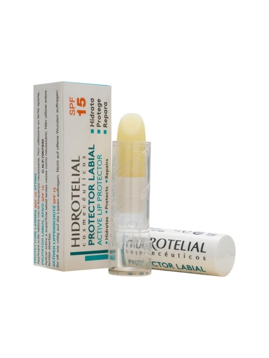 Hidrotelial protector labial activo SPF15+ te permitirá no sólo aliviar la sequedad de tus labios, evitando que se estropeen e irriten, también los protegerás de la acción de los rayos UVB/UVA.