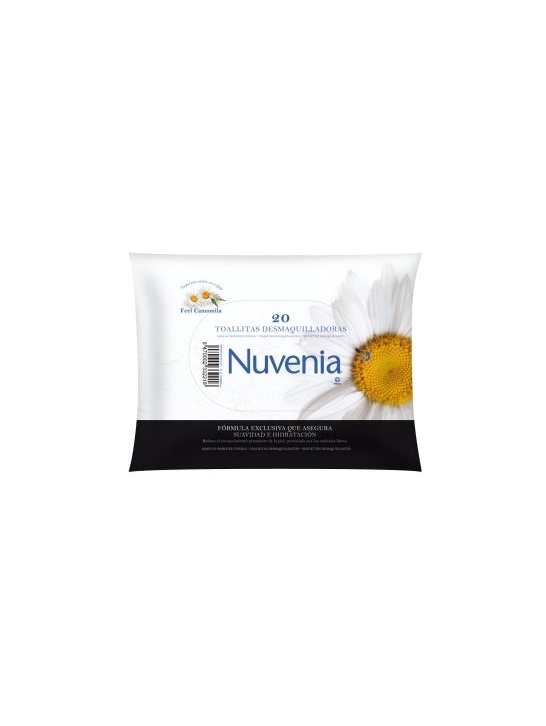 Indas Nuvenia toallitas desmaquilladoras limpia en profundidad la piel del rostro y elimina todo resto de maquillaje e impurezas. Aporta una gran hidratación y combate la sequedad de la piel, gracias a su alto contenido en compuestos humectantes.