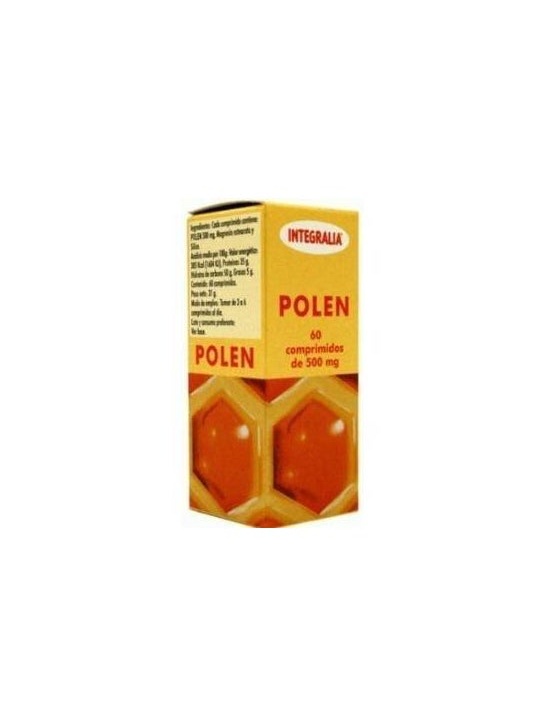 Comprimidos a base de polen de abeja de la marca Integralia, para ayudar a mejorar el sistema inmune. También contribuye al desempeño sexual gracias a las propiedades de este componente natural. El polen se utiliza con fines terapéuticos relacionados con las afecciones causadas por una baja respuesta inmune del organismo. Por ello, tomado como complemento (en ningún caso como un sustituto alimenticio) puede ayudar a superar problemas de salud. Aporta nutrientes esenciales para fortalecer el organismo y suministra una alta dosis de energía. Las personas que están bajo control médico o en tratamiento con fármacos deben consultar con su especialista antes de tomarlo; además, en mujeres embarazadas o lactando no se recomienda su uso. Finalmente, si se padece de hipersensibilidad o alergias alimenticias debe consultarse a un médico antes de usarlo.
