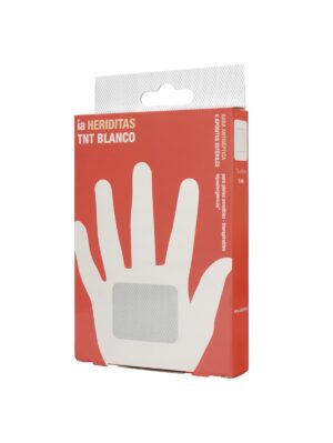 Apósitos clásicos con soporte en tejido blanco para heridas y rasguños. Con capa antiadherente y compresa antiséptica absorbente. Medida de 7,5 x 5 cm.