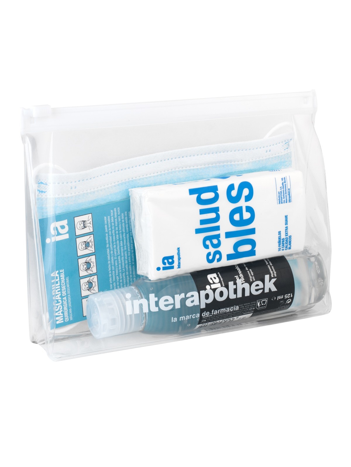 Este neceser con cierre zip contiene todos los básicos para mantener una correcta higiene de manos dentroy fuera de casa, así como para manternerse protegido frente al Covid. Contenido: