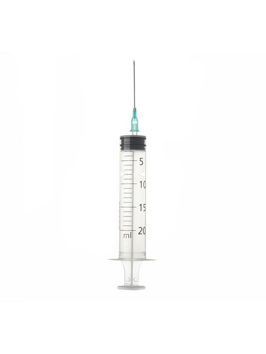 Jeringa de tres piezas sin aguja, de un solo uso para la aplicación de soluciones inyectables y extracción de sangre.