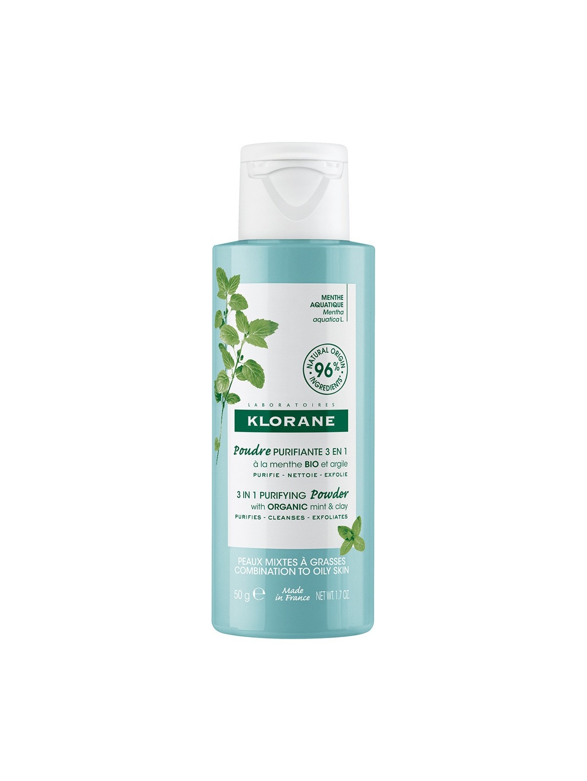 El Polvo 3-en-1 a la Menta Acuática BIO y Arcilla es un limpiador facial que purifica y exfolia las pieles urbanas mixtas y grasassin resecar. Su fórmula suave con un 96% de ingredientes de origen natural combina 2 ingredientes activos complementarios, la Mentaacuática, conocida por sus propiedades detoxificantes y antioxidantes, y la Arcilla Verde, que absorbe las impurezas.