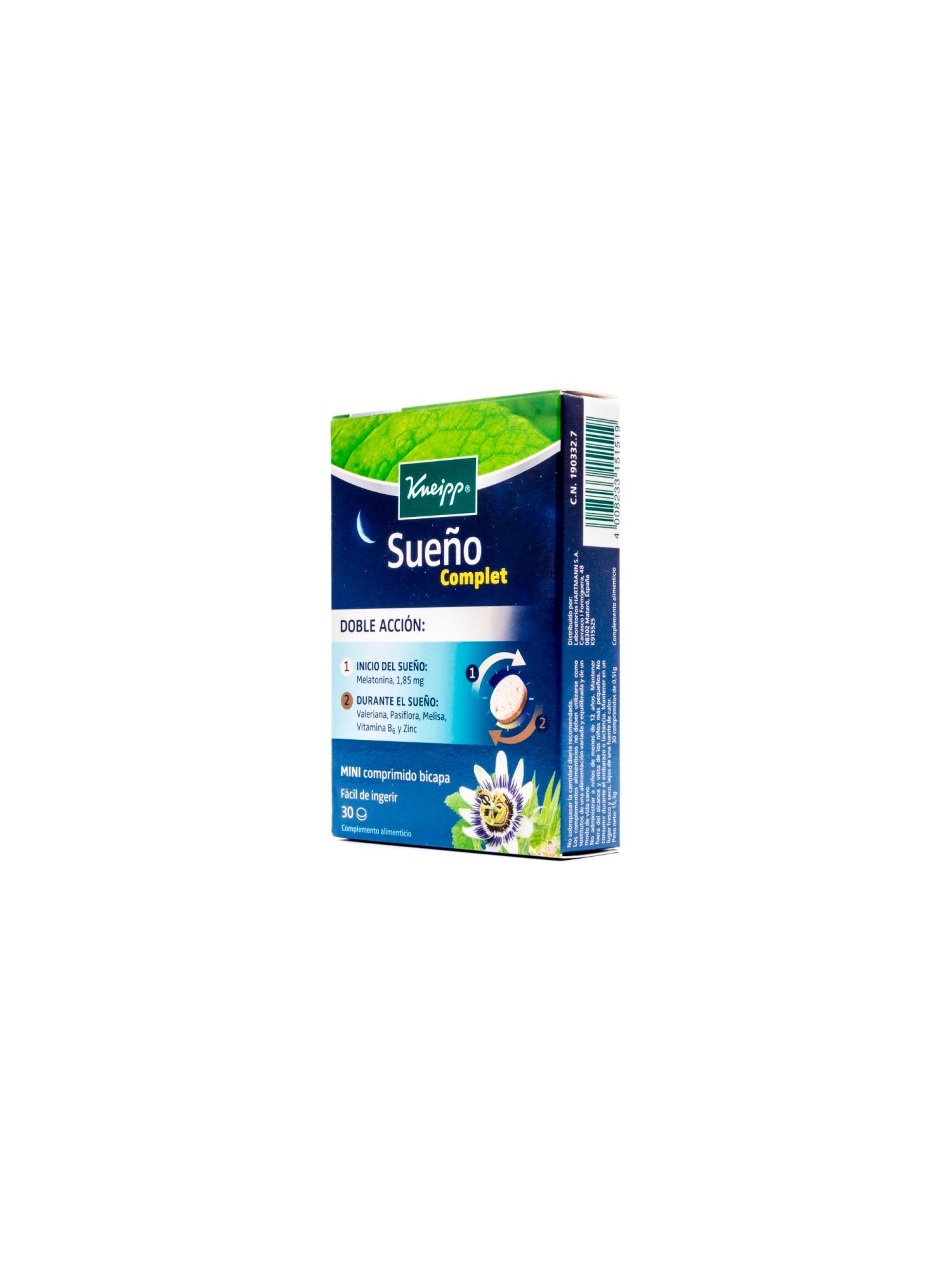 Kneipp Sueño Complet 30 Comp es un complemento alimenticio elaborado a base de melatonina, pasiflora, valeriana y melisa. Contribuye a reducir el tiempo necesario para conciliar el sueño, ayuda a mantener un sueño natural y a conseguir una óptima relajación. Además, contiene zinc y vitamina B6, que contribuyen al funcionamiento normal del sistema nervioso.