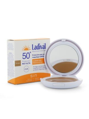 La gama de productos Ladival ofrece una protección solar al mismo tiempo que defiende la piel frente al envejecimiento cutáneo prematuro. Ladival Maquillaje Compacto SPF50+ es un protector solar en maquillaje compacto color dorado que combate los efectos nocivosde los rayos solares durante la exposición al sol. Gracias a sus propiedades protege del sol, al mismo tiempo que evita las imperfecciones cutáneas con un efecto maquillaje natural. Además proporciona luminosidad a la piel y un acabado mate y uniforme. Previene la pérdida de firmeza y elasticidad, y la aparición de arrugas. *Evita reacciones alérgicas. Indicado especialmente en pieles sensibles o alérgicas. Recomendado en pieles normales, mixtas y grasas. Devuelve el equilibrio natural a tu piel.