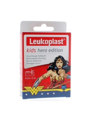 Apósitos para niños con diseños del superhéroe Batman, indicados para proporcionar cobertura y protección de pequeñas heridas, laceraciones, abrasiones, o después de venopunciones y vacunas. Resistentes al agua.