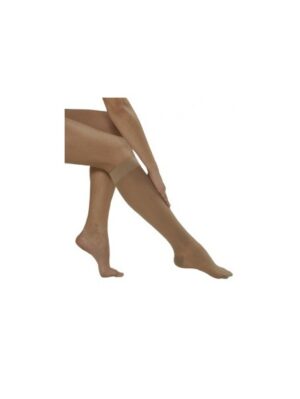 La media corta con puntera de Medilast aporta un grado de compresión normal (22/29mmHg). Su diseño hasta la rodilla se ajusta perfectamente mediante una banda elástica con puntera que no aprieta. Indicado para personas que busquen unas medias extra finas y elásticas que disimulen ligeramente las varices de las piernas y le aporten una eficaz acción de descanso.
