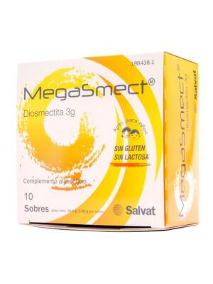 Megasmect Diosmectita 10 Sobres es un complemento alimenticio cuya función es tratar las diarreas agudas y crónicas, tanto en niños como en adultos, protegiendo la pared intestinal, absorbiendo los microorganismos y toxinas causantes de la diarrea, regulando la permeabilidad intestinal y ofreciendo actividad antibacteriana y antiinflamatoria sobre el epitelio intestinal.