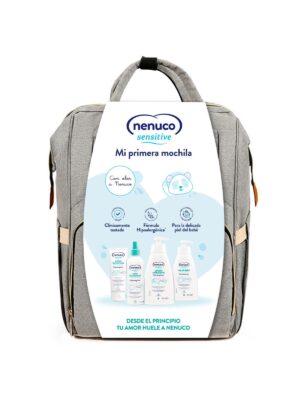 La mochila Nenuco Sensitive esta equipada con los primeros productos que necesita tu bebé para el cuidado de su piel. Se compone de: