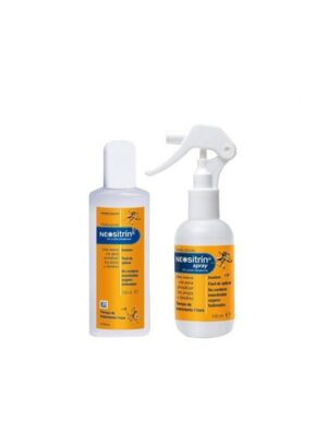 - Neositrin® Antipiojos 100% spray 60ml: formulado con dimeticona y penetrol, favorece la eliminación sencilla y no agresiva de los piojos y liendres. Su efecto se aprecia desde la primera aplicación tras 15 minutos.