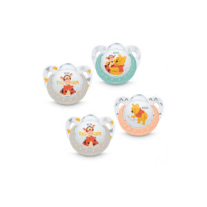 El chupete Trendline Mickey Mouse en talla 18-36 meses tiene una tetina de látex con forma anatómica exclusiva que imita el pezón de la madre durante la lactancia y que se adapta perfectamente al paladar del bebé. Con sistema de ventilación Nuk Air System. El aire escapa a través de la tetina, lo que permite que ésta permanezca suave y moldeable y además previene la deformación de la mandíbula del bebé. Contiene un escudo que cubre la boca con forma ergonómica. Caja portachupetes higienizable de 1 ud.