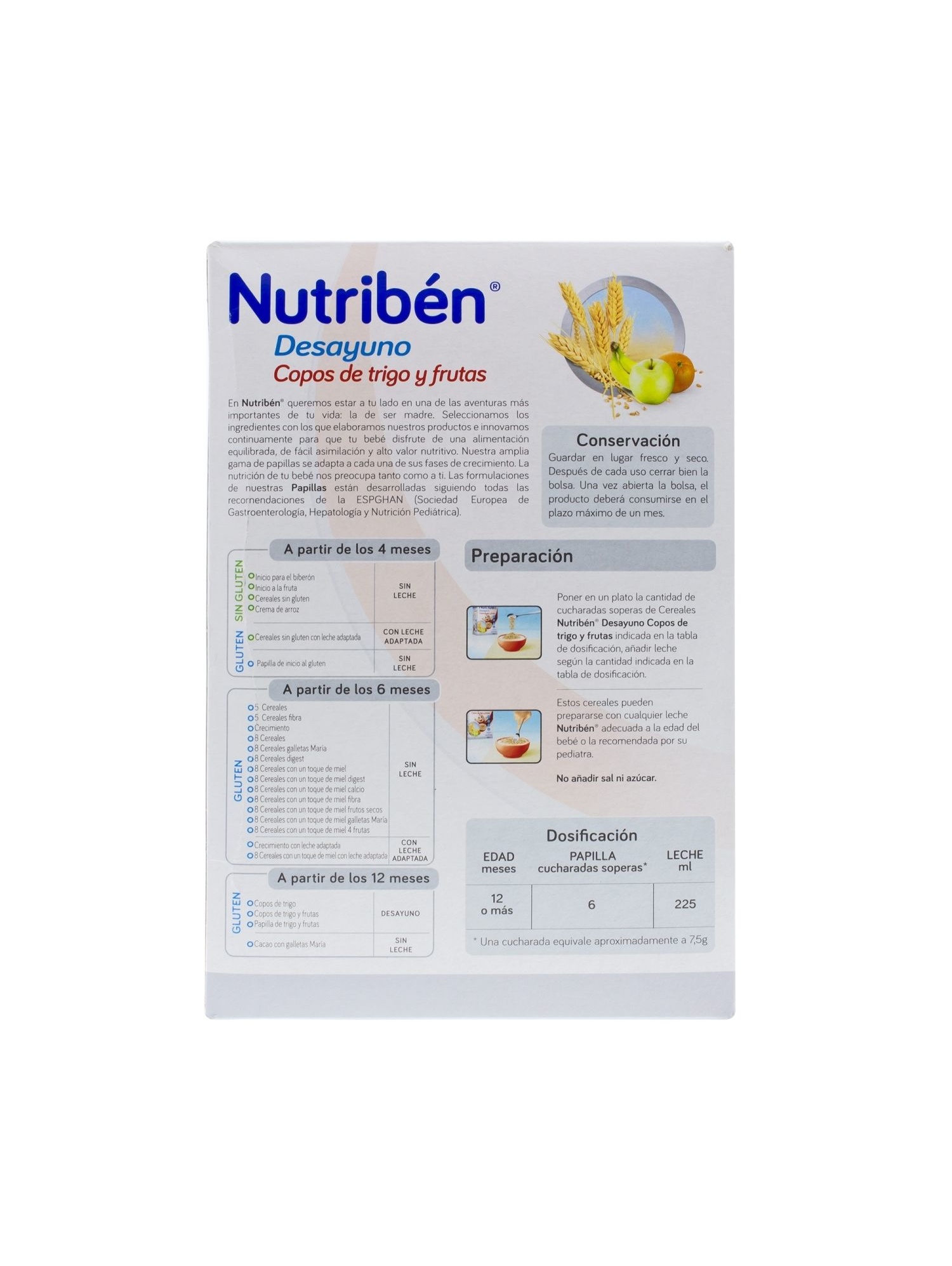 La alimentación de los bebés es muy delicada, pues de ella depende en gran medida su salud durante esta tierna edad. Nutribén desayuno copos trigo con frutas es un desayuno especial para bebés a partir de un año, los ayuda en su etapa de inicio a la masticación.