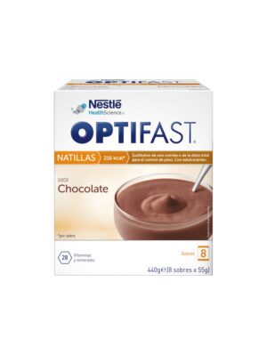 Optifast Natillas de Chocolate 8 sobres  tiene una fórmula que presenta un gran aporte de vitaminas y minerales que aporta todo lo que el cuerpo necesita, pero con una cantidad reducida de calorías.