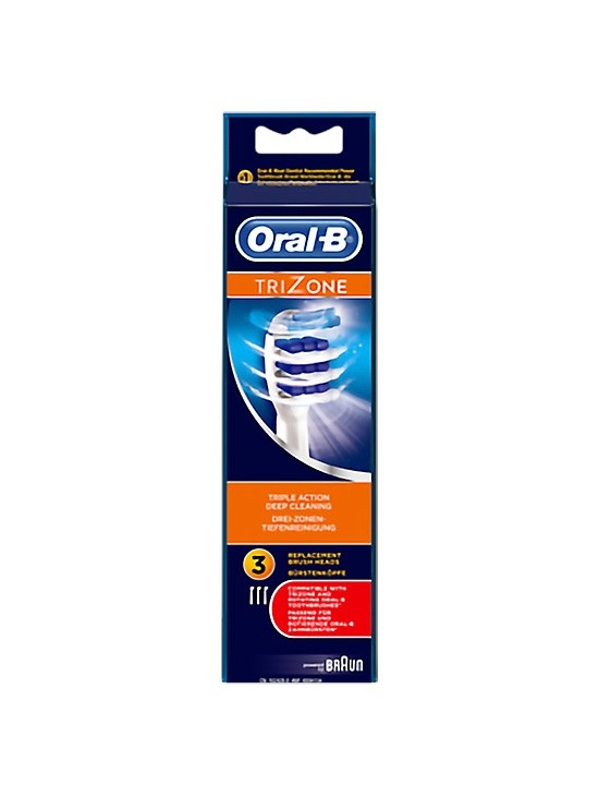 SE USA COMO UN CEPILLO NORMAL Y DA UN RESULTADO EXCEPCIONAL. El cabezal Oral-B TriZone incorpora la innovadora triple acción de limp ieza profunda para eliminar más placa que un cepillo manual normal. Elimina más y mejor la placa que un cepillo manual normal. Penet ra en profundidad entre los dientes. Fabricado por Oral-B, la marca de cepillos de dientes más recomendada por dentistas en todo el mundo