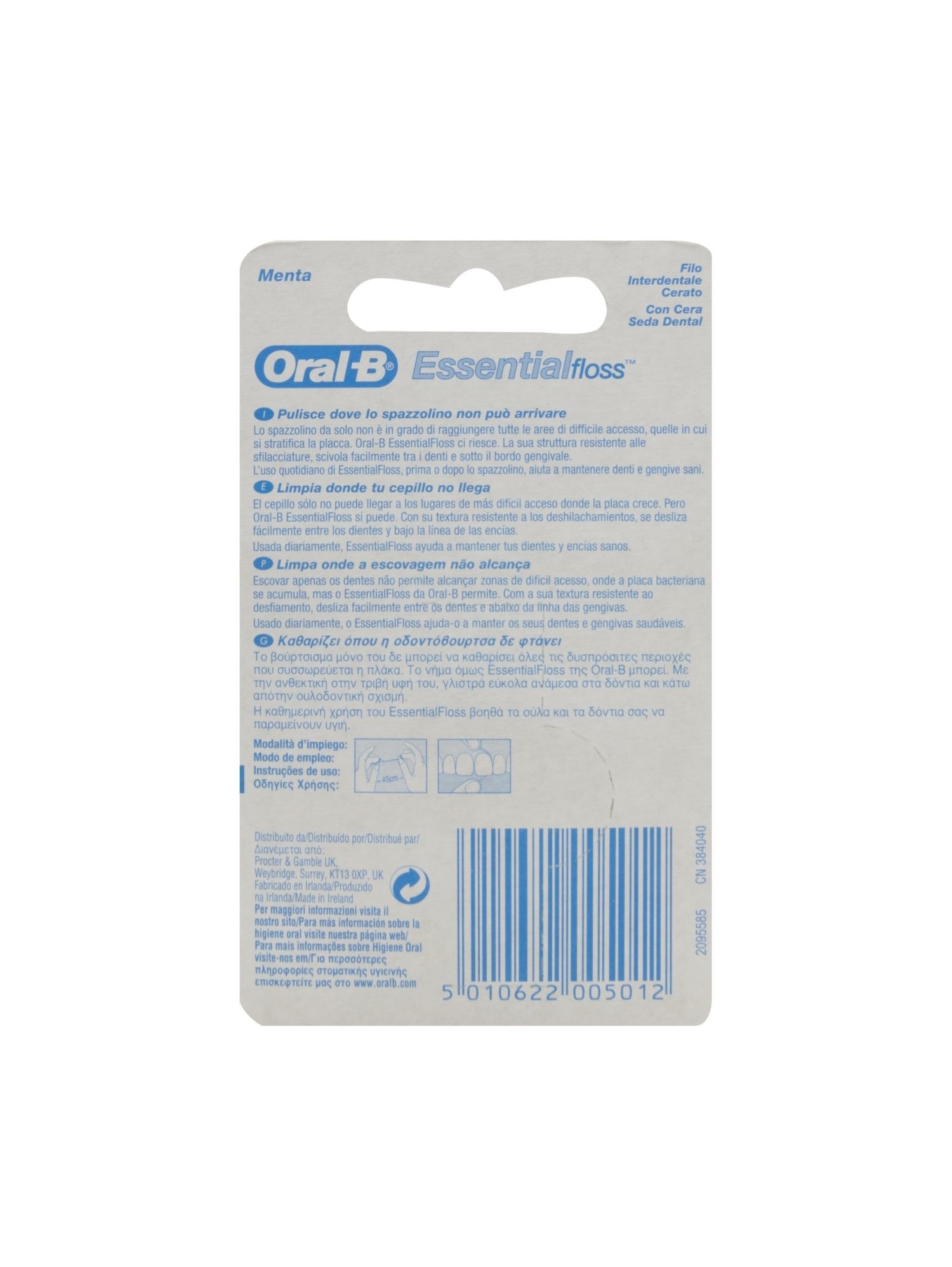Oral-B Essential Floss seda dental con cera menta es un hilo dental compuesto por un polímero específicamente diseñado para la eliminación de la placa en los dientes.