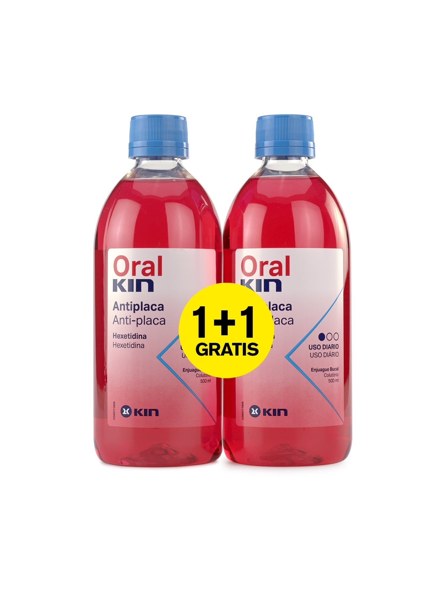Contiene 2 unidades de Oralkin Enjuague 500ml.