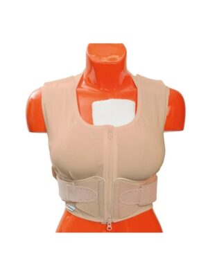 Arnés en forma de chaleco que está especialmente diseñado para su uso en mujeres, ya que incorpora una adaptación en la zona del pecho, y que está indicado para pacientes con inestabilidades anterolaterales, para ser adaptado a la silla de ruedas u otro tipo de sillas o sillones. Está fabricado con un material semirrígido transpirable tricapa de poliamida, espuma y poliéster, con unas cinchas de regulación y sujeción.