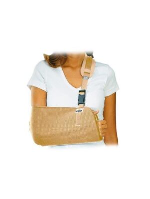 Esta órtesis inmovilizadora de Orliman está fabricada para ofrecer una gran contención y descarga de la articulación escápulohumeral. Su diseño facilita la sujeción del brazo para evitar movimientos que puedan generar mayores molestias. Este producto disminuye el dolor y estabiliza el miembro superior afectado. Está construido con tejido de panal y cuenta con una almohadilla interna que proporciona comodidad y firmeza. Posee cualidades transpirables que facilitan la expulsión del sudor de forma sencilla. Tiene forma de bolsa que facilita la introducción del brazo hasta la palma de la mano. Se sujeta en el hombro con una cincha regulable dispone de un cierre a presión que asegura el producto durante su uso. Este producto está indicado en caso de luxaciones o lesiones en el área. Puede ser usado por hombres y mujeres de cualquier edad.