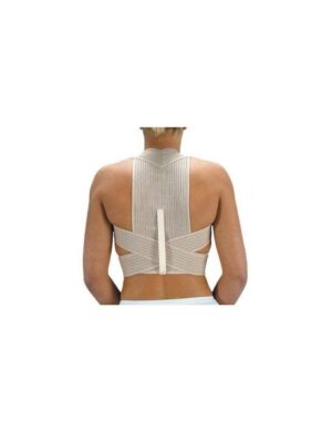 BANDA ANCHA DORSAL DE TEJIDO ELµSTICO MULTIBANDA TRANSPIRABLE. DOS BANDAS SUPERIORES QUE SE PROLONGAN SOBRE LOS HOMBROS PASAN POR DE BAJO DE AXILAS, CRUZAN POR LA ESPALDA Y CIERRAN EN EL ABDOMEN PERMITIENDO EJERCER UNA TRACCIàN GRADUAL DE LA ESPALDA MEDIANTE RETROP ULSIàN DE LOS HOMBROS HASTA SUPRIMIR LA MAL POSTURA CIFàTICA. NO ES RECOMENDABLE UTILIZARLA MµS DE 3-4 HORAS AL DÖA. INDICADAPARA DORSALGIAS Y COMO CORRECTOR DE POSICIONES INCORRECTAS Y VICIOS POSTURALES. MEDIR CONTORNO BAJO PECHO.